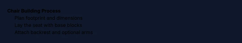 Before placing any blocks, sketch a small blueprint showing footprint, seat dimensions, and backrest height. Decide whether you want arms, a curved back, or a simple stool profile. Use consistent block colors and textures to ensure readability and avoid visual discord. In practice, starting with a 2x2 seat and then testing a few backrest shapes helps you refine proportions quickly. If you’re building in a new world or a different biome, adapt materials to reflect the environment while preserving the chair’s silhouette and function.