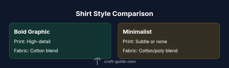 Print quality is the most visible difference between the two shirt styles, and it often drives satisfaction or disappointment after a few washes. Bold graphic shirts typically use screen printing or DTG (direct-to-garment) processes with vibrant inks designed to resist fading on cotton or cotton blends. Minimalist tees may feature subtler prints, embroidery, or heat-applied badges that last well with light washing. The choice of ink, number of color layers, and the garments base fabric all determine how long the artwork holds up. For a minecraft like a boss shirt, you want crisp edges, stable color saturation, and minimal cracking around shirt seams. In practice, screen-printed options tend to be more durable over time, while DTG can offer better color gradients on complex art. If you play hard, look for garments labeled with pre-shrunk cotton or ring-spun fabric that reduces pilling and maintains print integrity. The Craft Guide team recommends checking customer reviews for real-world wear, as lab tests cannot capture every washing cycle.