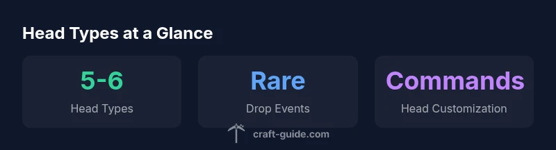 In Minecraft, a head is a wearable item that visually resembles a mob, creature, or character. The basic categories include mob heads like Creeper, Skeleton, Zombie, and Wither Skeleton Skull, a Dragon Head tied to the Ender Dragon encounter, and the Player Head which represents a named player. Heads are mostly cosmetic, used in builds, displays, and roleplaying scenes; some players collect them as trophies from adventures. The Craft Guide team notes that understanding which heads exist and how to obtain them helps players plan galleries, boss halls, or commemorative displays without unnecessary grinding. Different editions and versions can alter availability, so always verify with your current game version.