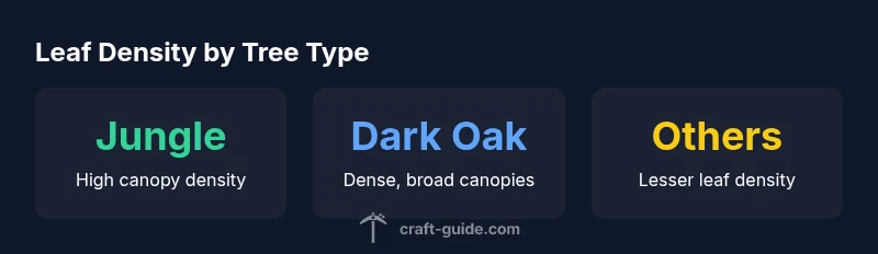 The most reliable in-game method to compare leaf density is to count leaf blocks within a defined region around a tree. You can use commands or a data pack to tally leaf blocks within a radius, or simply estimate by counting leaves per branch section and comparing across tree types. For a practical experiment, plant a jungle sapling and another canopy type, let them mature, and snapshot the canopy shape side by side. This approach gives you a qualitative sense of density and helps you plan builds that emphasize foliage. If you want precision, scripted tests or third-party tools can automate counting and provide reproducible results across worlds.