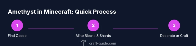 You’ll learn how to locate amethyst geodes, mine amethyst blocks and shards, and use them for decorations and basic tools like the spyglass. This guide covers practical mining tips, storage, and design ideas so you can turn amethyst into both beauty and function in your world. According to Craft Guide, amethyst shines in both aesthetics and simple contraptions.