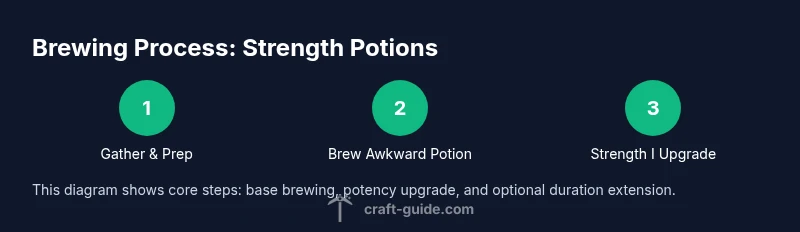 According to Craft Guide, a systematic brewing workflow reduces errors and speeds up production. Start with a clean workstation, pre-load water bottles, and keep Nether Wart handy as the anchor ingredient. When planning raids or long expeditions, prioritize Strength II potions with extended duration to maximize uptime. Craft Guide’s analysis shows that players who plan several batches in advance can stack buffs for tempo-based fights, enhancing the team’s overall effectiveness. The Craft Guide team recommends documenting brew timings, so you can replicate results consistently across sessions.