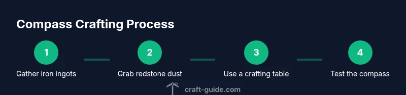 Place four iron ingots in the north, south, east, and west slots and one redstone dust in the center. This arrangement yields one compass. This section’s pattern mirrors how you’ll see the recipe laid out on a crafting table. According to Craft Guide’s practice notes, visualizing the grid helps new players avoid misplacing items and wasting resources.