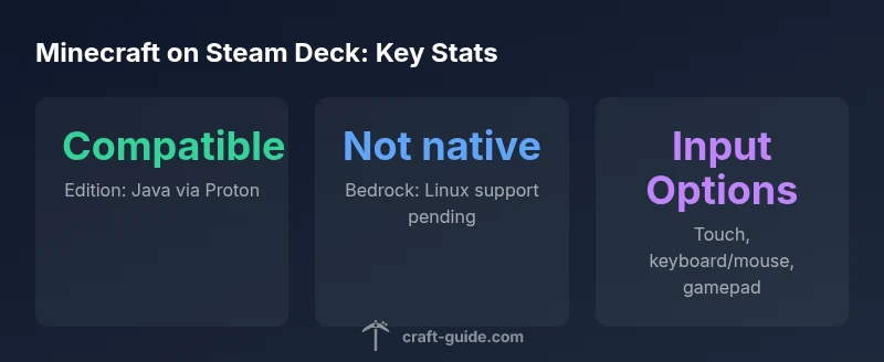 Minecraft Java Edition is well-supported on Steam Deck when run on Linux via Proton. Java Edition benefits from a traditional PC-like install path and can be tuned for portable play. Bedrock Edition, however, is not officially supported on Linux, which means there is no native Steam Deck/Linux launcher path for Bedrock. Some players explore Windows emulation or Android-based workarounds, but these are not straightforward and may incur stability issues. If the goal is simple portability and fewer compatibility headaches, Java Edition is the recommended route on Steam Deck. Craft Guide emphasizes that choosing the edition with broad Linux support minimizes setup friction and troubleshooting.