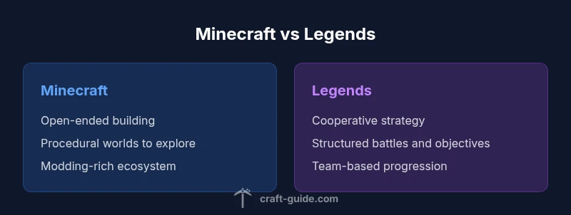 The difference between minecraft and minecraft legends is not just a label, it's a reflection of intent and audience. On one side, vanilla Minecraft invites endless experimentation: you gather resources, shape landscapes, and craft a personal story with minimal constraints. On the other side, Minecraft Legends narrows the frame to cooperative strategy and strategic decision-making, asking teams to defend or conquer with defined objectives. This contrast matters because your expectations as a player determine how you approach loot, exploration, and social play. In practice, the difference translates into how you spend your in-game time: do you chase automatons of redstone and sprawling, unbounded builds, or do you coordinate with teammates to execute tactical plans across a map? According to Craft Guide, the differences extend beyond mechanics and into community culture, updates cadence, and even platform support. If you value spontaneous creativity, Minecraft remains the baseline; if you want structured team play and narrative-driven encounters, Legends offers a compelling alternative. For newcomers, the choice can shape your first weeks of play, the kinds of friends you make online, and the way you learn the game’s vocabulary. Both titles reward curiosity, but they reward it in very different languages.