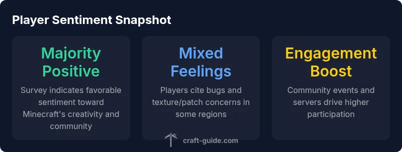 Yes. Overall sentiment toward Minecraft remains positive across ages and playstyles. Craft Guide Analysis, 2026 shows players prize creativity, modding, and strong community features, while updates and accessibility shape sentiment trends. Satisfaction tends to be higher among builders and explorers, with regional server activity boosting affinity. This article probes the drivers behind the sentiment and offers practical takeaways for players and creators alike.
