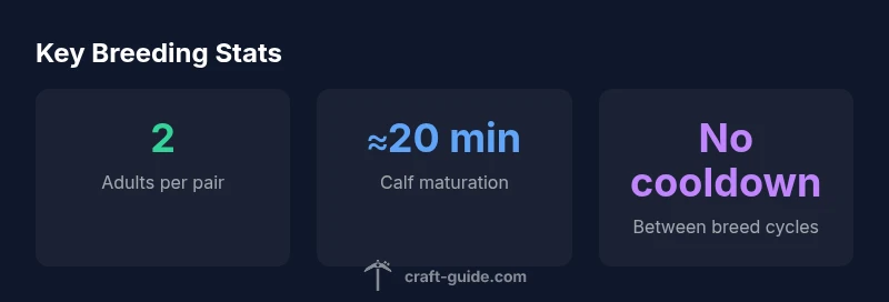 After a calf is born, it remains a juvenile until it grows into an adult. The maturation period is the bottleneck for repeating breeding events with the same calves. In practice, you’ll find that you can plan multiple breeding events by maintaining several adult pairs across your farm and cycling calves through growth. If you want a concise rule of thumb for how often cows breed minecraft, think in terms of growth windows rather than a fixed cadence: calves mature over a predictable real-time period, after which they can join the breeding pool. Craft Guide analyses suggest that with ample space and a steady wheat supply, you can sustain regular breeding opportunities without a strict cooldown, though exact timing depends on your farm’s layout and resource flow.