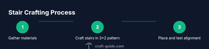 Common mistakes include miscounting blocks when crafting, placing stairs in the wrong direction, or creating too steep a climb for comfortable movement. Always verify the exact placement direction by walking up and down to confirm the intended ascent. If stairs feel cramped or misaligned, adjust the ramp to align with surrounding blocks and maintain a consistent rise; this improves reliability and reduces missteps. Lighting is another often-overlooked detail—place torches or lanterns to keep stairs visible at night and avoid hostile mob spawns nearby. The Craft Guide team recommends testing different layouts in a sandbox area before committing to a live build to ensure the most practical and aesthetically pleasing result.