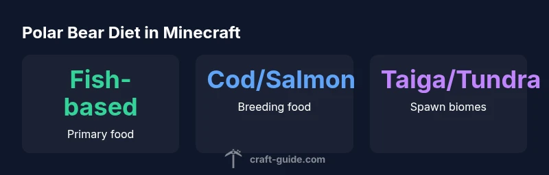 If you're wondering in minecraft what do polar bears eat, the short answer is fish. According to Craft Guide, polar bears rely on aquatic prey found in their Arctic habitats, and their diet shapes both behavior and breeding. This section covers the basics: which fish matter most, where polar bears spawn, and how their appetite influences hunting patterns and mob interactions. Polar bears spawn in cold biomes like taiga and snowy regions, and their preference for fish helps explain why players often design arctic enclosures with fishing routes. The connection between diet and behavior is practical for builders who want realistic ecosystems, and for players who want reliable breeding strategies. By grounding the diet in observed game mechanics, we can translate field observations into safe, repeatable gameplay tactics and creative builds.
