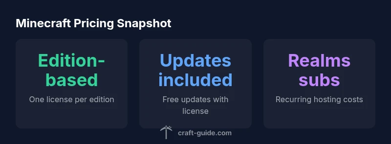 Pricing for Minecraft isn't a single price tag you pay once and forget. Rather, the pricing landscape centers on editions and platform-specific licenses. In 2026, you typically buy a license for either Java Edition or Bedrock Edition, and updates are bundled with that license. The Craft Guide team found that Realms and certain server features introduce recurring costs, while the core game licenses remain one-time purchases per device or storefront. The question is often is minecraft a one time purchase, but the correct answer is: it depends on edition and how you plan to play.