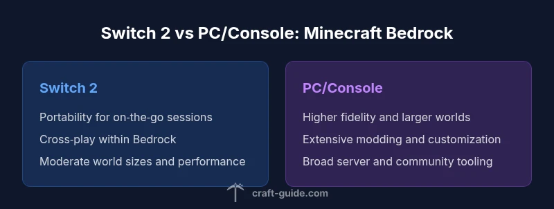 If portability and easy access to cross‑play are top priorities, Switch 2 wins for everyday play. If you want maximum performance, deep mods, and expansive, customizable worlds, a PC/console setup is the better long‑term investment, according to Craft Guide's balanced framework.