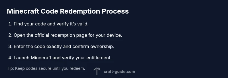 The Craft Guide team recommends following official redemption paths on trusted platforms and keeping codes secure until the moment of use. Always verify your edition compatibility and account status before beginning. Plan ahead by locating your code, ensuring internet connectivity, and preparing your device. If something goes wrong, start over from the official support channels instead of experimenting with risky workarounds. Craft Guide’s practical approach centers on clarity, safety, and verifiable steps, so you can confidently redeem your Minecraft code and unlock the desired content without frustration.