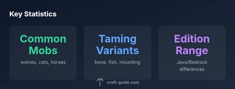 In Minecraft, the phrase what minecraft animals can you tame refers to a small group of mobs that players can domesticate into reliable partners. Understanding who can be tamed helps you plan journeys, build farms, and design efficient survival strategies. According to Craft Guide, taming mechanics have evolved across editions and updates, but the core idea remains the same: tame creatures become dependable allies, either as followers, guards, or mounts. The most venerable tameable mobs are wolves, cats, and horses. Over time, Mojang expanded the roster to include donkeys, mules, llamas, and parrots, each with its own quirks and requirements. The practical takeaway is simple: if you want a tool you can rely on in hostile biomes, you should learn how the tame systems work for the mobs you plan to encounter. Craft Guide analysis notes that taming is not universal; many mobs can be bred or attracted, but only a subset qualify as true tameable companions. The first step is to identify the mob you want and then study the precise interactions that unlock trust or mounting ability. This article uses version-agnostic language where possible while flagging any edition-specific caveats. In short, knowing what minecraft animals can you tame helps you map routes, allocate resources, and choose companions that match your playstyle.