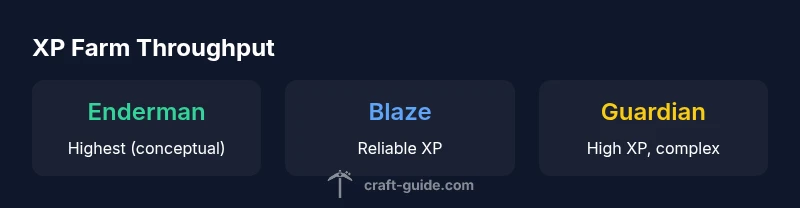 XP is more than a progress bar; it unlocks enchanting, anvil work, and villager interactions that influence your overall power and efficiency in the world. For players who want a steady, predictable progression, investing in a well-designed XP farm is a smart, long-term move. In practice, the choice of farm depends on access: do you have a path to the End, an established Nether fortress, or a nearby Ocean Monument? The Craft Guide team notes that the best XP strategy blends accessibility, throughput, and safety. According to Craft Guide, the End is often the most cost-effective and high-throughput option when designed around Enderman spawns. A practical mapping of your world’s resources can help you pick the right platform and layout for sustainable enchantments.