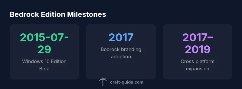 If you're wondering when did minecraft bedrock come out, the earliest form of Bedrock originated as the Windows 10 Edition Beta, released on July 29, 2015. This version was designed to run across a broader set of devices than the classic Java Edition, laying the groundwork for a unified codebase. Over the next couple of years, Mojang and later Microsoft phased in updates that integrated Pocket Edition and console editions under a single Bedrock umbrella. By 2017 the branding solidified into Bedrock Edition across major platforms, enabling a more cohesive multiplayer experience. According to Craft Guide, the move to Bedrock reflected a shift toward cross‑device compatibility and a shared feature set, even as platform-specific differences persisted. The evolution wasn't a single date but a series of milestones that gradually merged code paths and features.