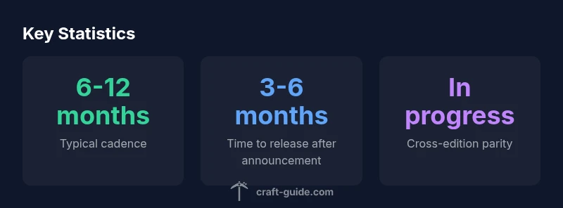 The question 'when is minecraft 1.22' reflects two intertwined concerns: the official date and the predictability of update cadences. As of today, there is no official release date announced for Minecraft 1.22 by Mojang. The development cycle for major updates typically includes design refinement, feature implementation, testing across editions, and staged previews for Java Edition, with Bedrock undergoing parallel but separate processes. Because the two editions diverge in their update pipelines, dates can drift and parity goals can influence scheduling. According to Craft Guide, it's common for major releases to appear within a window rather than on a single day, and to be followed by a staggered roll-out across platforms. For readers, that means the best approach is to monitor official channels and major outlets rather than chasing a precise calendar date. The takeaway: the absence of a fixed date is normal for a big feature release, and patience often yields a clearer understanding of what to expect when the update finally lands.