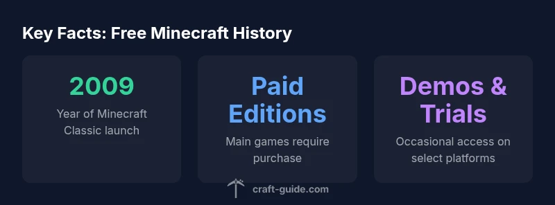 Minecraft is not broadly free today; the earliest official free offering was Minecraft Classic, released in 2009 as a free web version. Since then, main editions have been paid, with free demos or trials on select platforms. For many players, understanding when was minecraft free helps set expectations for current access options.
