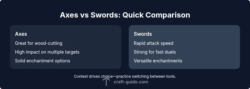 When you think about weapon choice in Minecraft, the question often boils down to a single trade-off: axes vs swords. The core question of why are minecraft axes better than swords is not universal; it depends on your objective and environment. In practical terms, axes typically deliver heavier per-hit impact and tend to support wood-related tasks or crowd control, while swords provide faster strikes and smoother single-target combos. According to Craft Guide, the best decision emerges from a mix of scenario, terrain, and enchantment setup, not a single stat. Understanding these nuances sets the stage for smarter loadouts across PvE, mining runs, and base-building.