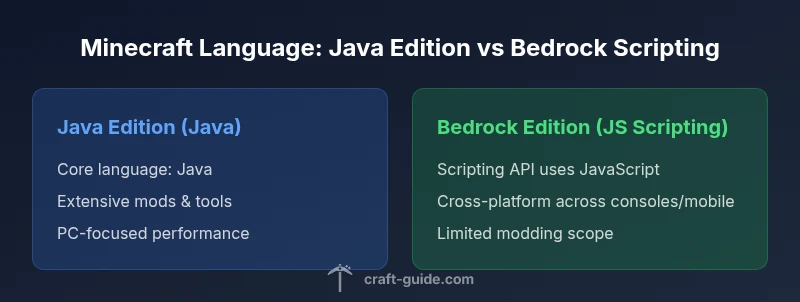 The question does minecraft use java or javascript often appears in forums and guides. The concise answer is that the game's core on the Java Edition runs on Java, while JavaScript shows up in Bedrock through a scripting API and related add-ons. This distinction matters for builders, modders, and redstone enthusiasts who want to automate tasks or create custom content. When you ask does minecraft use java or javascript in practice, you’re really asking which edition you’re playing and which tooling you plan to use. Craft Guide’s analysis shows that most players dealing with mods or large-scale maps will lean toward Java Edition because its language and tooling have matured over many years. For those curious about scripting, the JavaScript path exists, but it operates within defined boundaries and with platform-specific constraints.