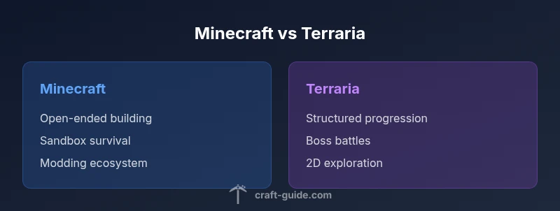 is minecraft the same as terraria? Not when you look at core goals. According to Craft Guide, the two games share a sandbox mindset but diverge in what you’re actually trying to accomplish. Minecraft centers on open-ended construction, resource gathering, and survival in a procedurally generated world built from blocks. Terraria leans toward curated exploration, crafted gear, and a directed progression through bosses and biomes. The result is two distinct playstyles that appeal to different moods and skill sets. Players who want to shape landscapes with redstone circuits and modular buildings will gravitate toward Minecraft, while players who enjoy combat pacing and item hunts will feel at home in Terraria. The Craft Guide team emphasizes that understanding this distinction is crucial for choosing the game that best fits your tastes.