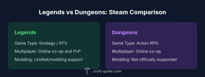 Minecraft Legends is built around strategic planning, territory control, and base development with a focus on cooperative or competitive campaigns. By contrast, Minecraft Dungeons is a more straightforward action-RPG experience that rewards quick reflexes, team coordination, and dungeon exploration. The Steam versions make it easy to manage saves and progress alongside your Steam friends. Both titles offer distinct pacing—Legends rewards methodical planning and long-term projects, while Dungeons emphasizes rapid co-op progression and loot loops. From a buyer’s perspective, you’re choosing between a deep strategic rhythm and a fast, social action loop that scratches different creative itches. According to Craft Guide, the best way to compare is to map your preferred session length, social setup, and tolerance for complexity against these two experiences. This framing helps ensure you don’t buy a title that clashes with your usual Minecraft sessions. The bottom line: Legends and Dungeons provide two different but valid routes to Minecraft on Steam, each with its own value proposition for distinct players. Craft Guide’s analysis highlights that your decision hinges on playstyle alignment and time commitment.