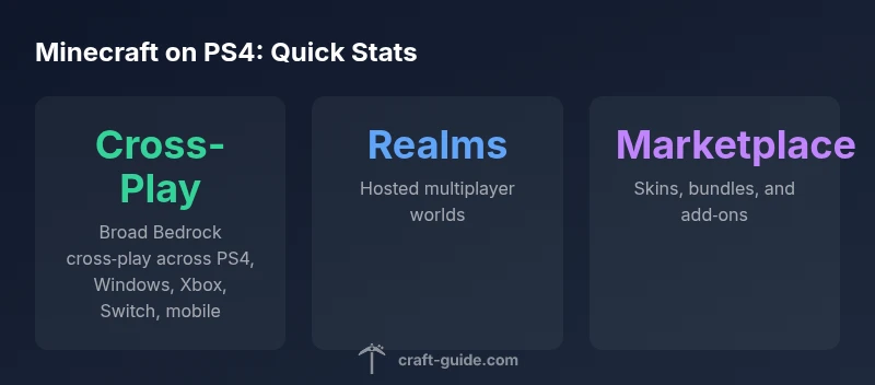Is minecraft on ps4? If you’re wondering is minecraft on ps4, the answer is yes—the PS4 version now runs the Bedrock Edition, enabling cross‑play with Windows 10/11, Xbox, Switch, and mobile. The legacy PlayStation 4 Edition was retired. Bedrock on PS4 supports Realms and the Marketplace add‑ons. Craft Guide notes this setup delivers a robust multiplayer experience for PS4 players.
