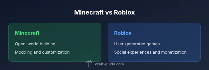 According to Craft Guide, the is minecraft or roblox question isn’t about declaring a universal winner, but about aligning features with your goals. In practical terms, Minecraft emphasizes open-ended building, survival challenges, exploration, and a robust modding ecosystem. Roblox centers on rapid content creation using Roblox Studio, scripting with Lua, and a thriving social playground where players publish experiences for others to enjoy. When evaluating the question 'is minecraft or roblox', your criteria should include creative scope, learning potential, accessibility, safety, and community support. This section lays the groundwork for a fair comparison by clarifying terms and expectations, so you can weigh each platform against the same yardsticks.