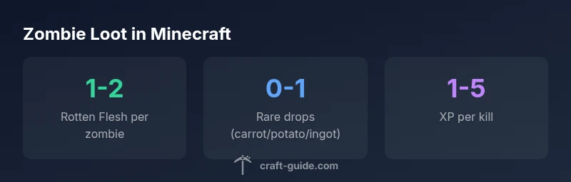 In Minecraft, players frequently ask, what do zombies drop in minecraft? Understanding the baseline loot helps you plan farms, trades, and survival strategies. The simplest answer is that zombies drop rotten flesh as their core loot. On most kills, you will receive between one and two pieces of rotten flesh, plus a small amount of experience. This makes zombies a reliable source of early-game food and trading fuel, especially on hard difficulties where food scarcity can be a challenge. Beyond rotten flesh, zombies can occasionally drop other items, but with notably lower probability. These extras include miscellaneous crops (carrots or potatoes) and, on rare occasions, ingots or other loot from the broader loot table. The exact distribution of these drops can differ depending on whether you are playing Java Edition or Bedrock Edition, and it can also be influenced by the Looting enchantment on your weapon. The Craft Guide team emphasizes that knowing the baseline loot is essential for planning efficient zombie farms.