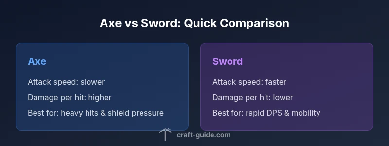 When considering why use an axe over a sword minecraft, the quick answer is context. Axes deliver heavier hits and can be more effective after a cooldown, while swords attack faster for sustained DPS. The Craft Guide team notes axes shine when facing shields or time-sensitive heavy-hitting moments; otherwise, swords stay the reliable all-rounder.