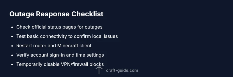 Set up a simple outage response plan: bookmark official status pages, enable automatic client updates, and have alternate play sessions (local worlds) ready. Consider caching essential world data locally to minimize disruption during authentication downtime. Craft Guide recommends staying informed through reliable status feeds to react quickly when outages occur.