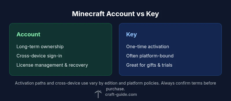 Explore the difference between Minecraft account and key, how licensing works, and which option fits you best. This objective, in-depth comparison covers ownership, activation, cross-platform play, and practical decision tips for Minecraft players.