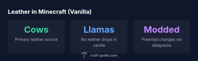 Leather is a long-standing resource in Minecraft, used for armor, books, and various crafting recipes. In vanilla gameplay, the primary leather source is cows, which drop leather when killed. Leather can also appear as a source in chest loot in dungeons, temples, and other generated structures. These loot tables are version-dependent, so the exact chance of finding leather in a chest can vary between updates. The Craft Guide Analysis, 2026, emphasizes relying on cows for a steady leather supply in survival mode rather than farming llamas for leather.