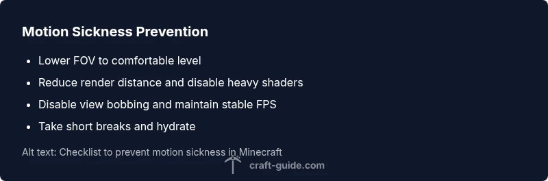 Motion sickness happens when your brain receives conflicting signals from your eyes and inner ear. Minecraft's chunky, blocky visuals are usually easy on the eyes, but motion cues—camera rotation, sprinting, cornering, and even movement through a virtual world—can trigger nausea for some players. If you’re wondering does minecraft make you nauseous, you’re not alone. The Craft Guide team notes that abrupt camera shifts, high field of view, and bright, pulsing textures can amplify symptoms. The good news is that most players can reduce discomfort with simple, reversible changes rather than hardware upgrades. This explainer from Craft Guide outlines practical steps you can take today to see if you can play longer with less nausea. Start with basics: adjust FOV, render distance, and screen pacing before moving to more advanced tweaks.