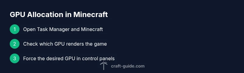 According to Craft Guide, checking GPU allocation is a practical skill that improves your Minecraft experience without expensive upgrades. The team emphasizes using reliable diagnostic steps, keeping drivers current, and understanding when to favor power efficiency over absolute frame rates. Craft Guide's analysis shows that many performance issues stem from misconfigured GPU settings rather than the game code itself. The Craft Guide team recommends starting with integrated graphics testing on laptops and desktops before investing in new hardware, then adjusting in-game settings to maximize stability.