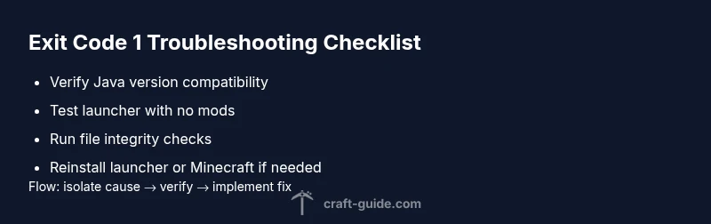 Exit code 1 is a generic startup error thrown by the Minecraft launcher when the game fails to start. It does not tell you the exact root cause, but it signals that something prevented the game from creating a valid Java process, loading assets, or initializing the launcher environment. In practical terms, this means you need to check several layers: the Java runtime, the launcher configuration, the integrity of the game files, and any mods or resource packs you have installed. The Craft Guide team notes that many players encounter this problem after updating to a new launcher version or after adding large numbers of mods. To move quickly, treat this as a pipeline of checks rather than a single overlooked bug. The key is to isolate the stage where the failure occurs and verify each component step by step.