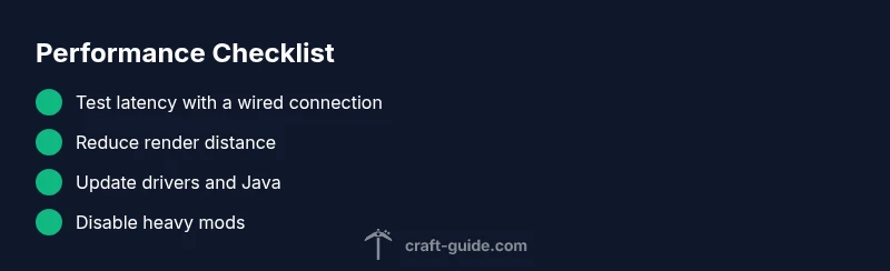Lag shows up in several recognizable patterns: sporadic stutters, long world loads, or persistent low FPS. Quick wins include testing a wired connection, lowering render distance, and exiting unnecessary background apps. For stuttering with a single world, the issue is often a world-specific load or a mod conflict; for online play, check server connection and ping. If you notice increases in lag after a recent update or mod install, the culprit is probably introduced by software changes. Use a process of elimination: change one variable at a time and test before moving to the next fix.
