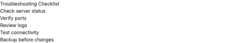 - Restart the server during low-traffic windows and verify stability for 15–20 minutes.