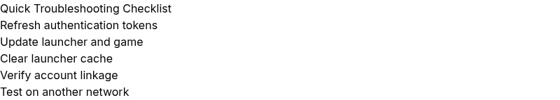 - Authentication/session issues (invalid token, session expired) – high likelihood if you recently changed passwords or reinstalled the launcher.