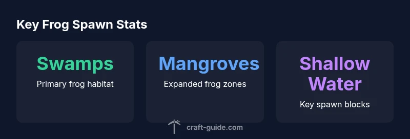 If you’re wondering where do minecraft frogs spawn, the answer is straightforward: they appear in swamp biomes, and this includes mangrove swamps that were added in later updates. Frogs emerge from shallow water within these wetlands and along the banks, especially where vegetation like tall grasses, lily pads, and seagrass lines the shore. The spawn logic mirrors real-world amphibian habitats—wet, humid environments with bodies of standing water. In practice, you’ll notice frogs more frequently near slower-moving ponds and swampy pools. This block forms the core idea that swampy ecosystems are the natural homes for frogs in Minecraft, a pattern that remains consistent across Java and Bedrock editions. The Craft Guide Team’s analyses emphasize the swamp biome as the primary frog habitat across versions, with mangrove swamps expanding the accessible spawn areas for players exploring coastal wetlands.