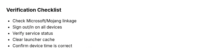 There are several frequent triggers for verification failures. A mismatched Microsoft/Mojang account linkage is the most common, especially after migration or updates. Server-side outages or maintenance can cause temporary verification delays. Users may be signed in with the wrong login method (Microsoft account vs. Mojang account) or on a device with stale cache. Network-related problems — VPNs, proxies, or unstable connections — can interrupt the handshake. Time zone or system clock drift can lead to authentication rejections. Finally, security features like two-factor prompts or account suspensions can block verification until resolved. Craft Guide recommends checking the official status page, ensuring your account is fully migrated, and cleaning up cached credentials on the launcher.