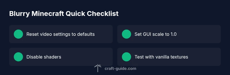 According to Craft Guide, the most likely reason your Minecraft looks blurry is a misconfiguration of your in-game resolution, GUI scale, and texture/shader packs. Start with a quick test: reset video settings to defaults, set GUI scale to 1.0, and ensure render distance is reasonable. Then disable shader packs to test vanilla visuals.