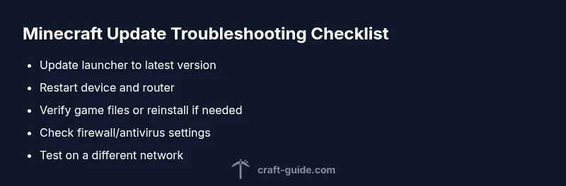 According to Craft Guide, update failures often stem from an outdated launcher or local data that conflicts with the latest patch. The problem can also be caused by network issues, firewall restrictions, or corrupted game files. This section will lay out the core reasons in plain terms and set you up for the step-by-step fixes that follow. Understanding the root cause helps you avoid repeating the same mistakes and speeds up recovery, especially when you see the exact phrase why is my minecraft not updating pop on screen. By the end, you’ll have a clear, actionable plan to restore updates without losing progress or safety.