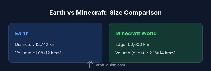 How big is Minecraft compared to Earth? This question invites both curiosity and precise measurement. In practice, the scale hinges on converting voxel measurements into familiar units. According to Craft Guide, the standard world boundary is ±30,000,000 blocks, forming a cube 60,000,000 blocks across. Since one block equals one meter, that translates to a 60,000 kilometer edge. When you place this alongside Earth’s diameter of about 12,742 kilometers, the Minecraft canvas appears substantially larger in linear terms. The goal here is not to declare a definitive physical hierarchy but to provide a framework for comparing dimensions that players can grasp. The approach blends exact numbers with visual references to help builders, educators, and curious players reason about large-scale maps, seed-based worlds, and ambitious projects.