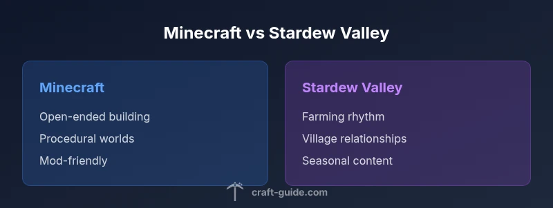 Choosing between minecraft or stardew valley comes down to your personal goals. If you crave architectural freedom, scalable automation, and expansive discovery, Minecraft offers a vast sandbox with a growing ecosystem. If you want a comforting, character-driven life sim with farming, relationships, and seasonal milestones, Stardew Valley provides a more guided, slower-burn experience with satisfying social layers. Many players enjoy both in different seasons or moods, using each game to fulfill complementary needs: Minecraft for ambitious build projects and experimentation, Stardew Valley for community life and farming progress. Craft Guide recommends matching your play style to the core loop you find most rewarding, then exploring the other game as a seasonal change of pace.